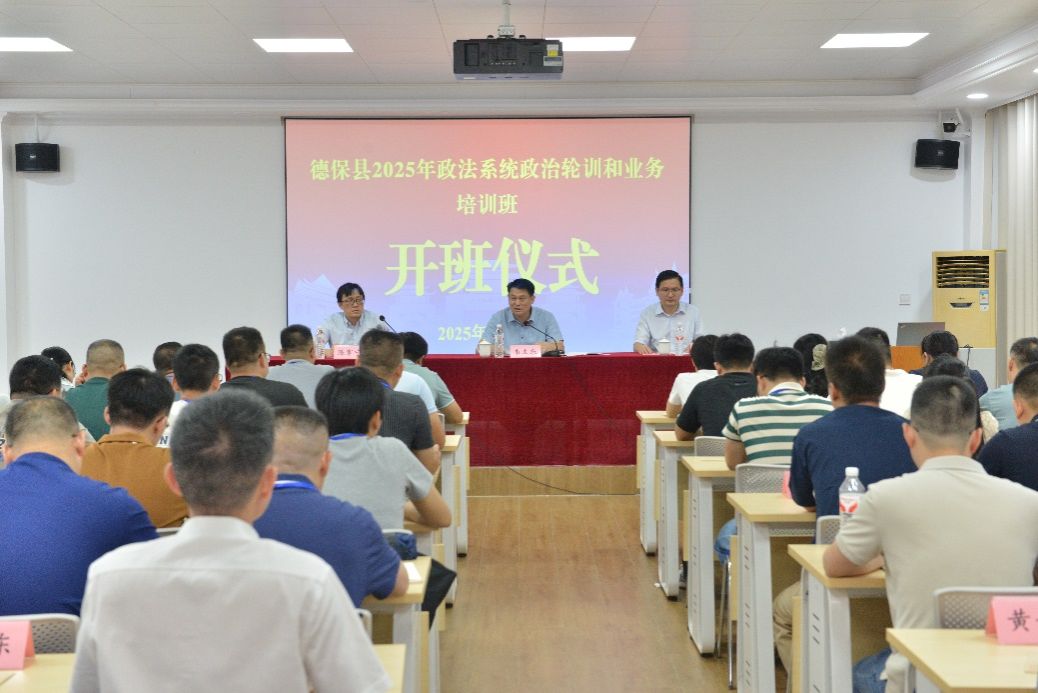2025年7月14日上午,德保县2025年政法系统政治轮训和业务培训班在bw必威西汉姆联顺利开班。德保县委常委、政法委书记韦文东作开班动员讲话, 继续教育学院党委书记、院长马志伟出席开班仪式并致辞,德保县政法系统干部50人参加培训。