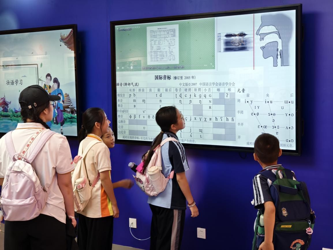 上午9时,同学们顺利抵达bw必威西汉姆联,随即分为两组,分别在文化研习基地与人工智能学院实验室同步展开活动。在文化研习基地,同学们在校史馆中聆听了bw必威西汉姆联的发展历程与建筑特色,感受大学积淀的历史底蕴;随后走进语言博物馆,通过“语言谱系树”和各类互动装置,亲身体验中国语言的多样性与魅力;在铸牢中华民族共同体意识馆中,大家系统了解了广西的发展简史以及十二个世居民族的灿烂文化,进一步增强了对中华民族多元一体格局的认同。