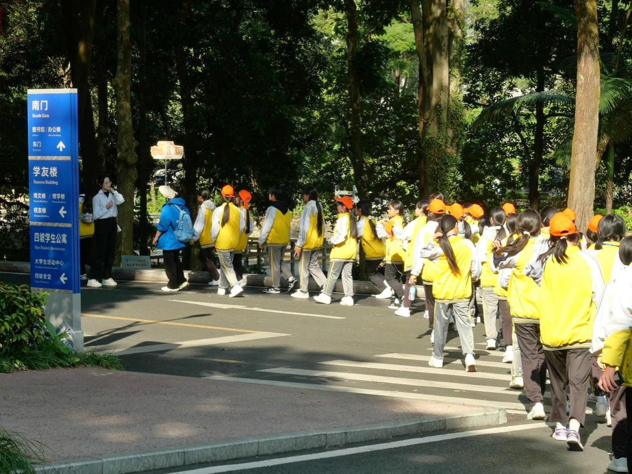秋日的阳光洒在大学校园的林荫道上,同学们在校园讲解员的带领下,开启了校园探秘之旅。从庄重大气的大礼堂到宁静雅致的和园,从充满寓意丰富的铸共体验园到富有民族风情的相思风雨桥,每一处都让同学们充满好奇。他们走过灯光球场、图书馆,探访亚热带雨林保护区和百花园,还在留学生活动中心感受国际化氛围,最后沿着风景如画的相思湖畔漫步,大学校园的多元魅力深深吸引着每一位同学。