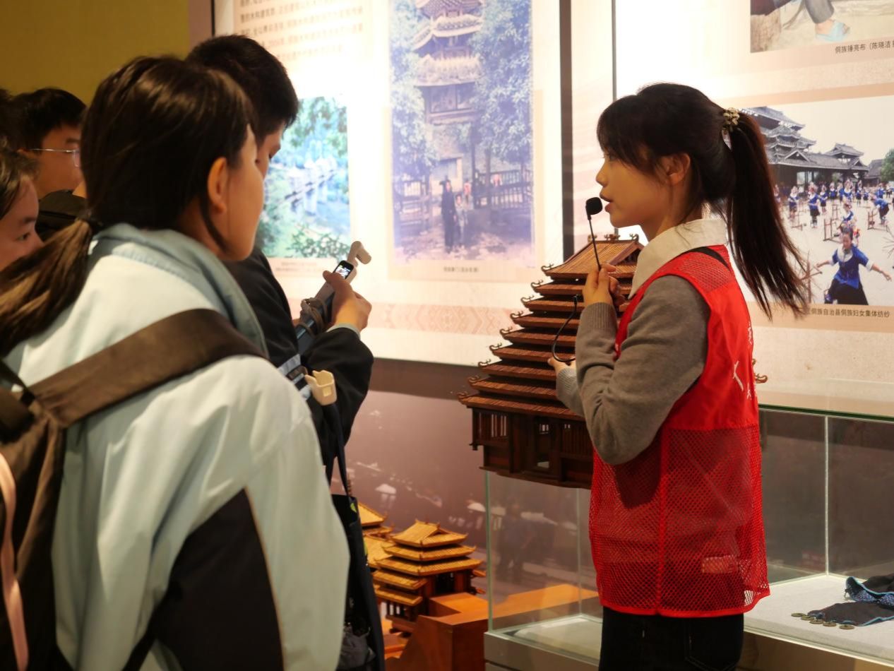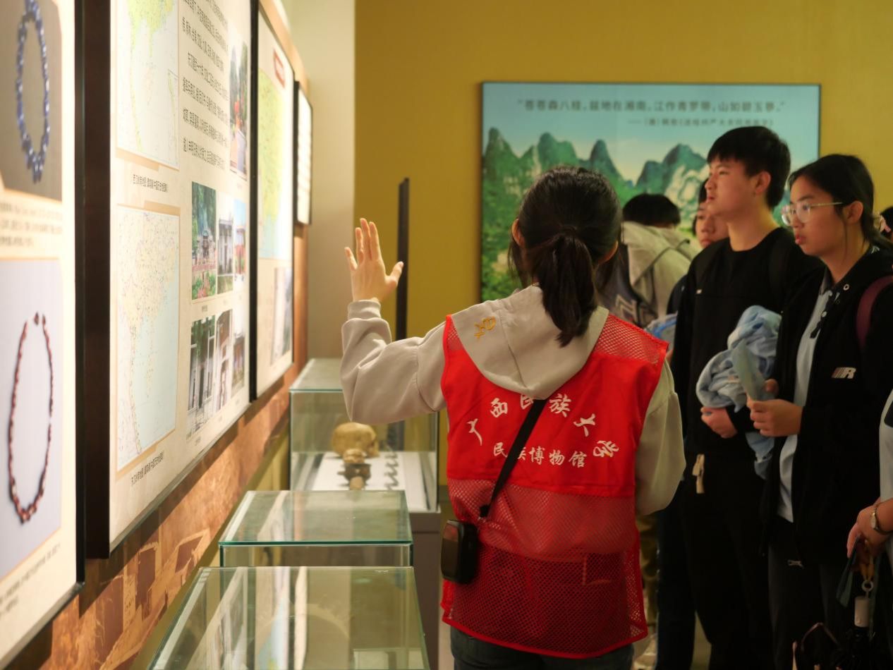 随后,师生们前往bw必威西汉姆联研习基地进行参观。基地内丰富的民族文化陈列、生动的非遗项目展示,为同学们打开了一扇了解广西多彩民族文化的窗口。通过实物、图文及多媒体介绍,大家对中国各少数民族的传统技艺与文化内涵有了初步的认识。