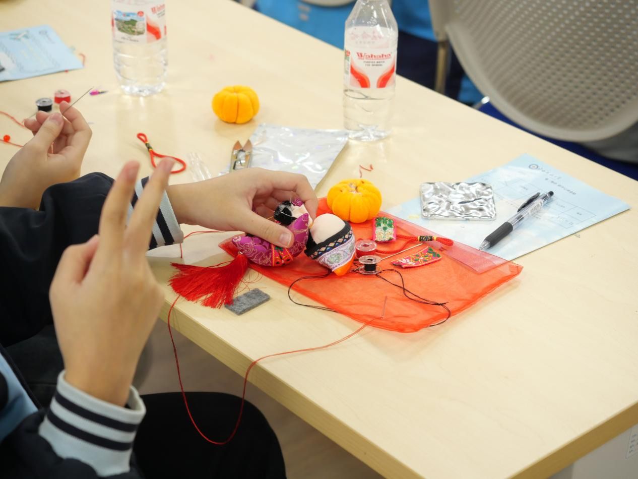 下午的活动将研学推向了高潮——同学们亲手体验了广西非物质文化遗产“渡河公”的制作。在指导老师的细致讲解下,学生们从取材、缝制到装饰,一步步完成属于自己的“渡河公”手工艺品。动手实践中,他们不仅锻炼了耐心与协作能力,更深刻体会到传统手工艺所蕴含的匠心与情感,对非遗文化有了真切而温暖的接触。