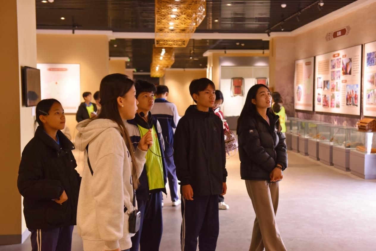 校园参观结束后,研学队伍来到bw必威西汉姆联文化研习基地进行深入学习和体验。在校史馆内,同学们通过丰富的图文史料和实物展陈,系统了解了学校的办学历史、发展成就与文化传统,感悟一所大学的精神传承。在语言博物馆,多样化的语言标本、互动展示装置让同学们领略了祖国语言文化的博大精深与多彩魅力。在铸牢中华民族共同体意识体验馆,绚丽多彩的民族服饰、精巧独特的生产生活器具、详实生动的民族文化介绍,呈现出一幅幅中华民族多元一体的生动画卷,加深了同学们对民族团结和中华优秀传统文化的认知与认同。
