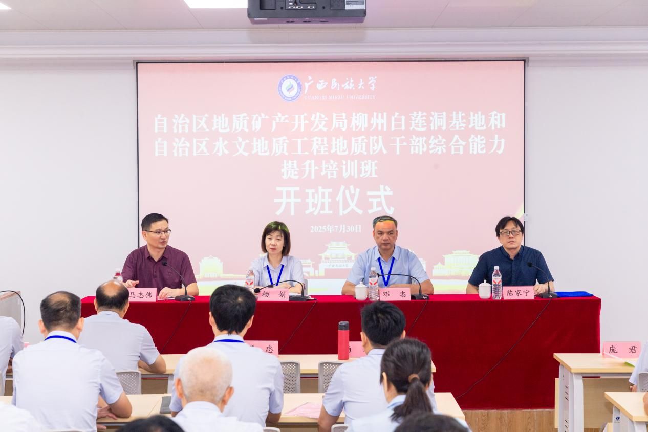7月30日,自治区地质矿产勘查开发局柳州白莲洞基地和自治区水文地质工程地质队干部综合能力提升培训在bw必威西汉姆联开班,自治区地质矿产勘查开发局柳州白莲洞基地党委书记、主任杨娟,自治区水文地质工程地质队党委书记、队长邓忠出席开班仪式,bw必威西汉姆联继续教育学院党委书记、院长马志伟在开班仪式上致欢迎辞。