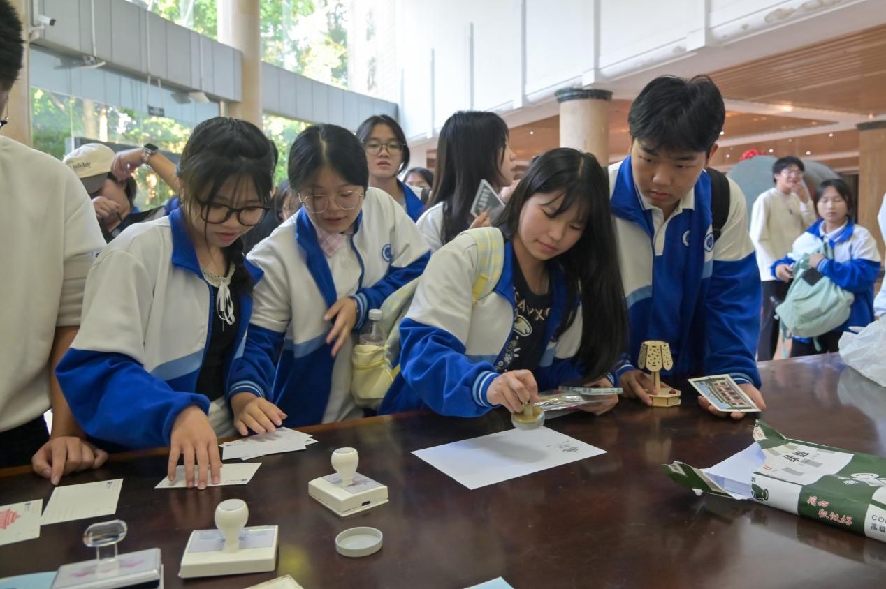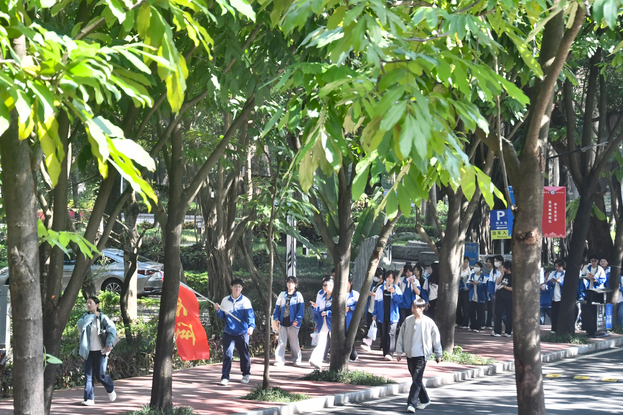 大巴缓缓驶入校园南门,一幅充满生机的大学生活画卷在眼前展开。同学们首先在大礼堂前合影,一张张笑脸定格在初入大学的兴奋与期待中。在校园讲解员的带领下,他们漫步于绿意盎然的校园,途经庄重典雅的大礼堂、活力四射的灯光球场、书香四溢的图书馆、功能丰富的大学生活动中心,以及富有民族特色的风雨桥和静谧优美的相思湖畔。每一处景观都像一扇窗,让同学们窥见大学生活的多彩与深厚。