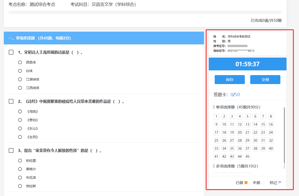 (一)考试形式:学科综合水平考试采用线上考试,考试形式为闭卷,考试涵盖单选题、多选题及判断题等题型,满分100分。